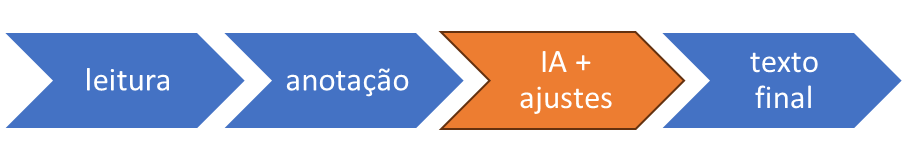 · Quando for escrever a revisão da literatura, somente junte tudo em um texto coeso. Chamo esse processo de costurar, e será onde a IA vai entrar;